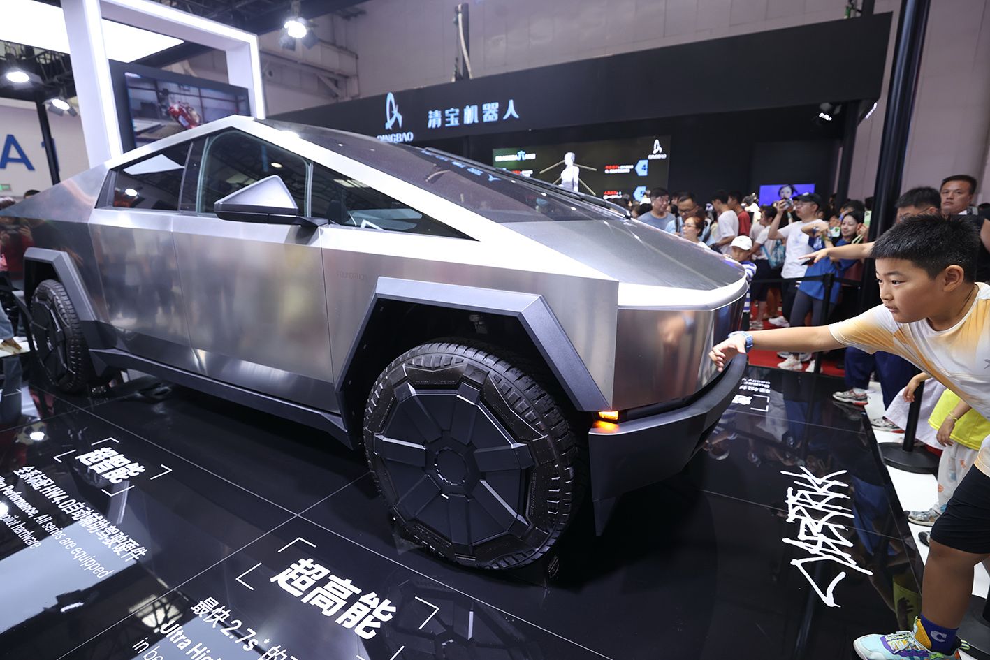 8月25日,参观者在2024世界机器人大会上观看特斯拉的赛博越野车。(CFP)