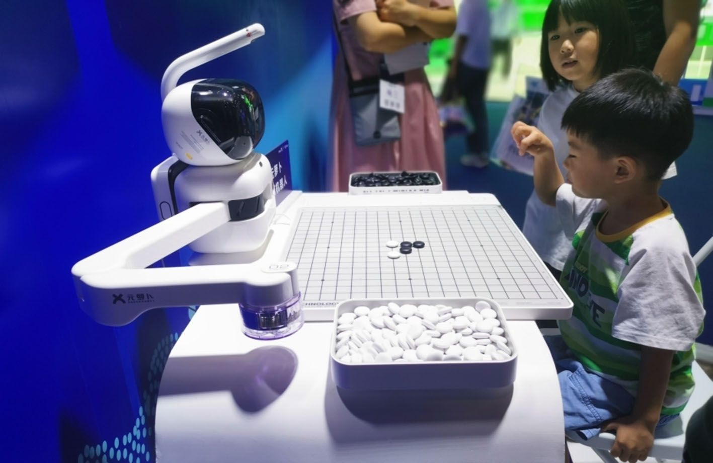 HICOOL2024全球创业者峰会正在北京举行。一系列“黑科技”云集于此,智能感十足,吸引着观众排队体验。图为小朋友在体验下棋机器人。(中新网)