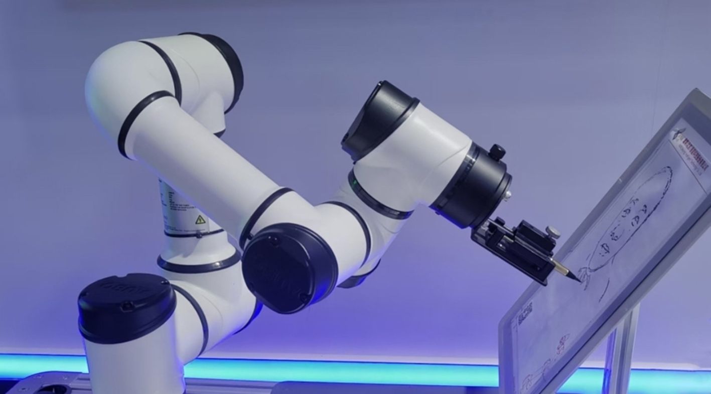 HICOOL2024全球创业者峰会上一系列“黑科技”云集于此,智能感十足。图为AI绘画机器人在作画。(中新网)