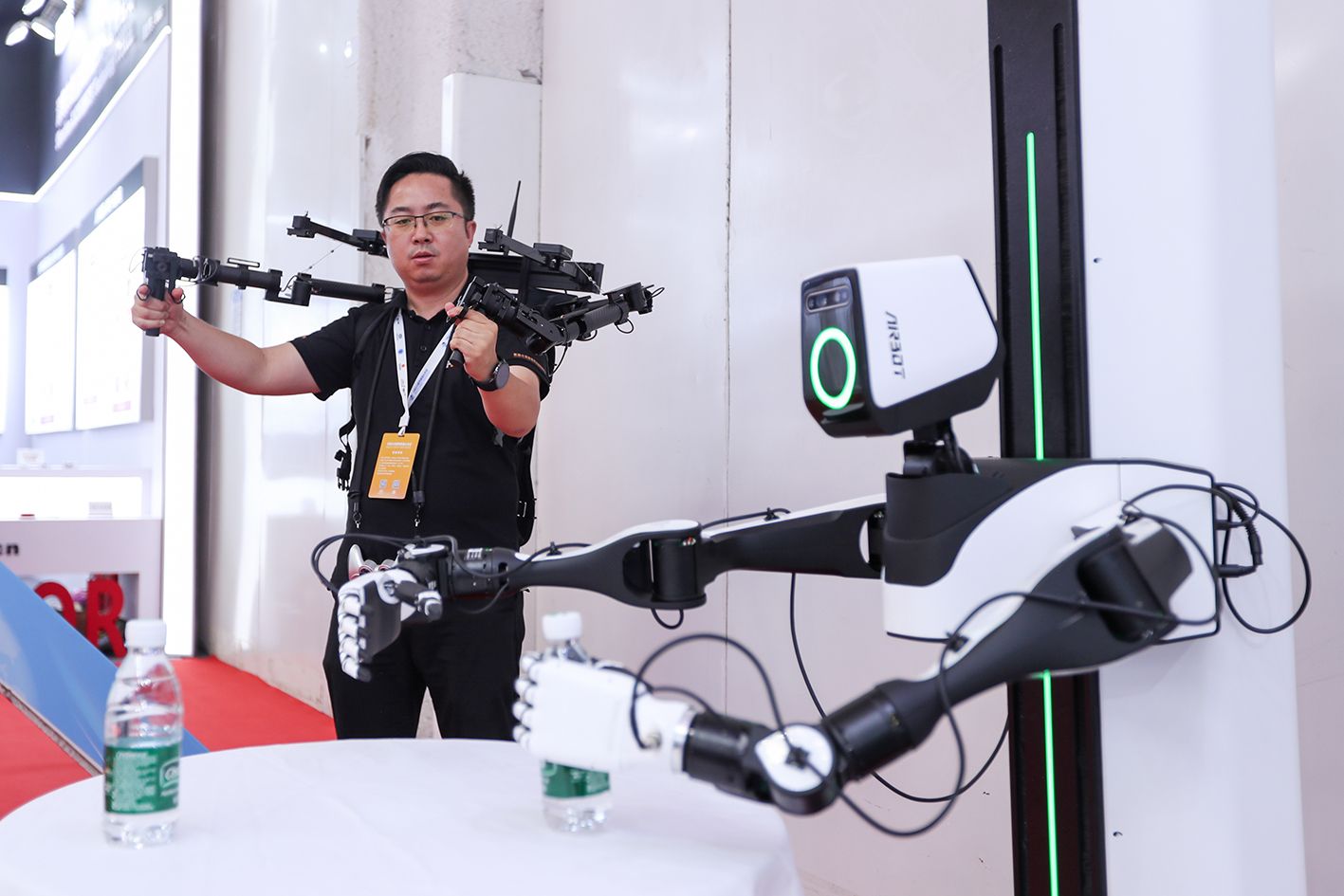 图为2024世界机器人大会现场,观众自行操控机器人。(中新社)