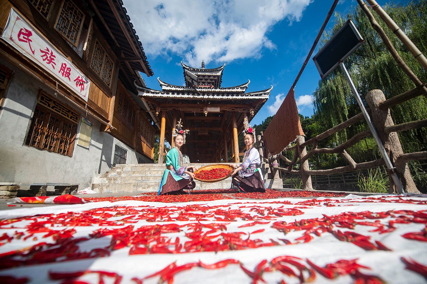 贵州黔东南州,从江县往洞镇增冲村村民在晾晒收获的辣椒。(CFP)