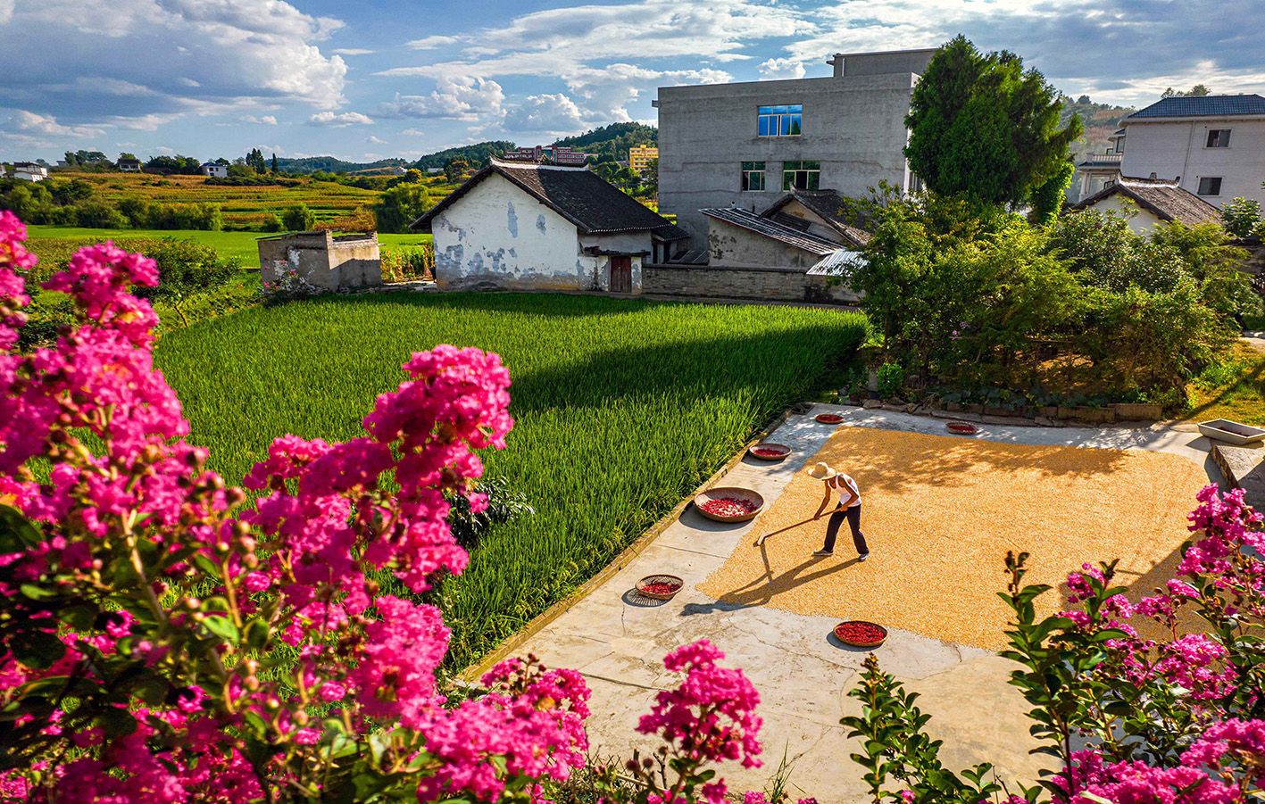 初秋时节,中国各地乡村迎来丰收季节。玉米、高粱、南瓜、辣椒等农作物晾晒在农家房前屋后,与田园风光融为一体,呈现出五彩缤纷的丰收图景。
