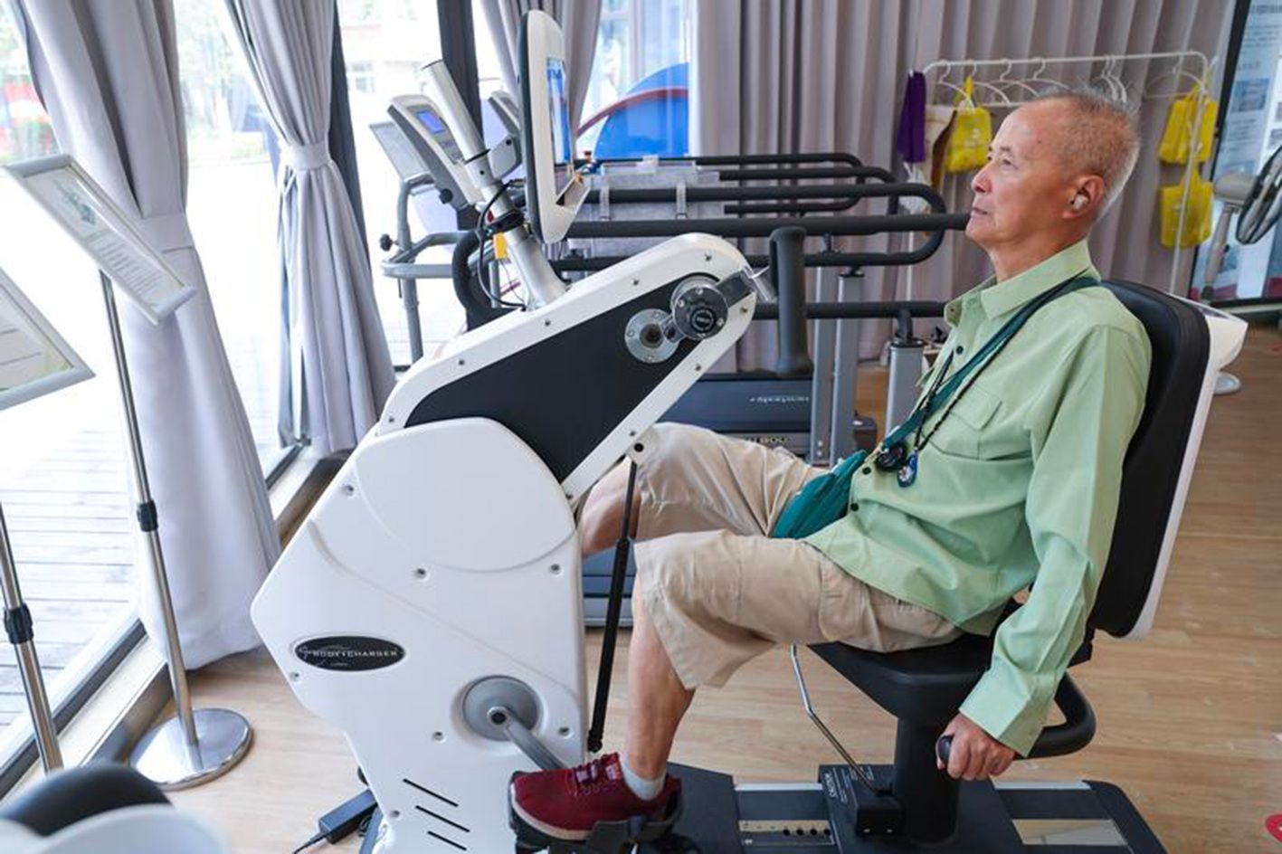 老人在嘉兴市南湖区新嘉街道电子社区邻里中心内的“长者运动之家”锻炼。近年来,浙江省嘉兴市南湖区坚持以推进“一老一小”服务体系为重点,着力完善托育照护服务体系和养老服务体系,推进“医防护”三位一体儿童健康管理中心、幸福食堂等公共基础设施适老化适小化改造,构建“居家+社区机构+智慧养老”家门口的幸福养老模式,服务保障好“一老一小”重点群体。(新华社)