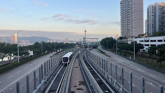 澳门轻轨下半年将投入使用,与横琴站、珠机城际二期城轨连成一线、互联互通。(图/中国央视新闻)
