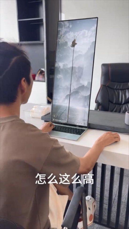 有位抖音博主发布搞笑视频,他爆改自己的笔记本电脑,专门为《黑神话》立棍改出了一面超高竖屏显示器,屏幕分辨率1080×6920,他表示“这一棍下去二郎神都要被敲傻了”。