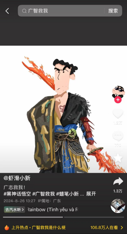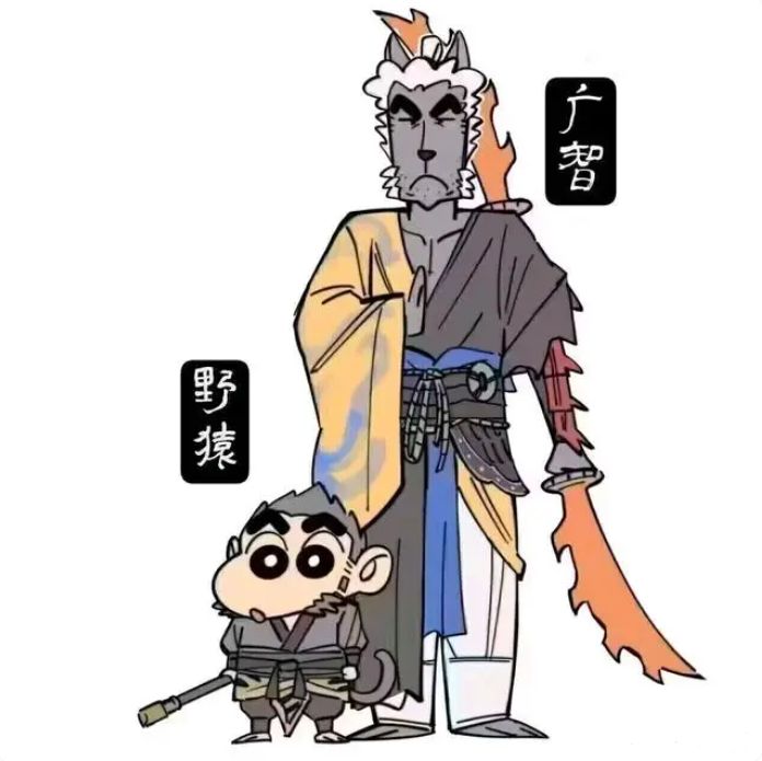 此外,“广智”音同《蜡笔小新》中小新的爸爸“广志”,便有玩家做了广志的表情包,还有玩家画了“野猿广智”。