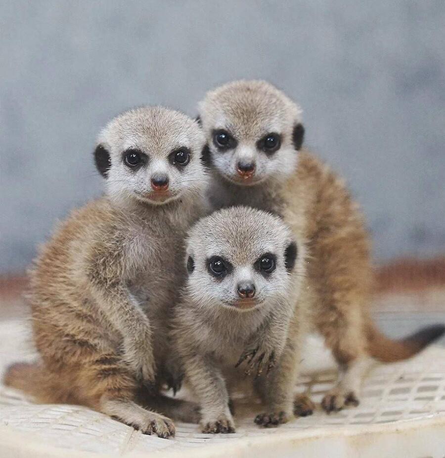 细尾獴(学名:Suricata suricatta),别名狐獴,海岛猫鼬,灰沼狸等,是獴科细尾獴属的唯一物种。细尾獴是高度社会化的动物,构建的是母系社会,其内部统治者是雌性首领和雄性首领,雄性首领由雌性首领选出,雌性细尾獴之间出于竞争有杀婴现象,所以出于本能獴妈“护犊”的警惕性极高。生产前,獴妈自己挖好“产房”,不允许饲养员靠近产房,一旦饲养员靠近,它就会吼饲养员。分娩后,獴妈时刻把宝宝们护在身体下,不允许任何人靠近。三周后,才会带它们从“产房”里出来溜达,带它们学习刨土、打洞、吃虫子。如今,三只獴宝茁壮成长,精力充沛,十分活跃,白天,它们争抢打闹,晚上又叠在一起睡觉。为了帮助獴妈快恢复身体,饲养员每天都给它准备了蚕蛹作为加餐。