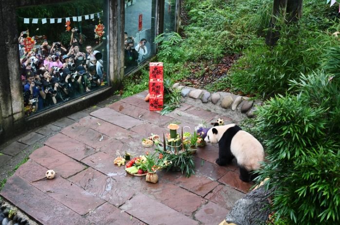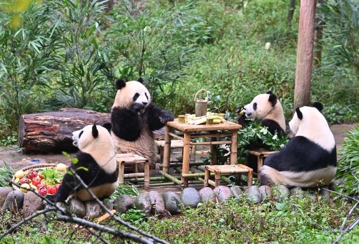 9月13日,中国大熊猫保护研究中心雅安基地举行大熊猫集体生日。(图/中新社)