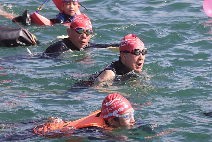 马英九致词时说,第一次参加日月潭泳渡活动是在2002年52岁时,今年是他第11次下水挑战,泳渡日月潭活动是台湾招牌,一年举办一次很可惜,很多人只能望潭兴叹。