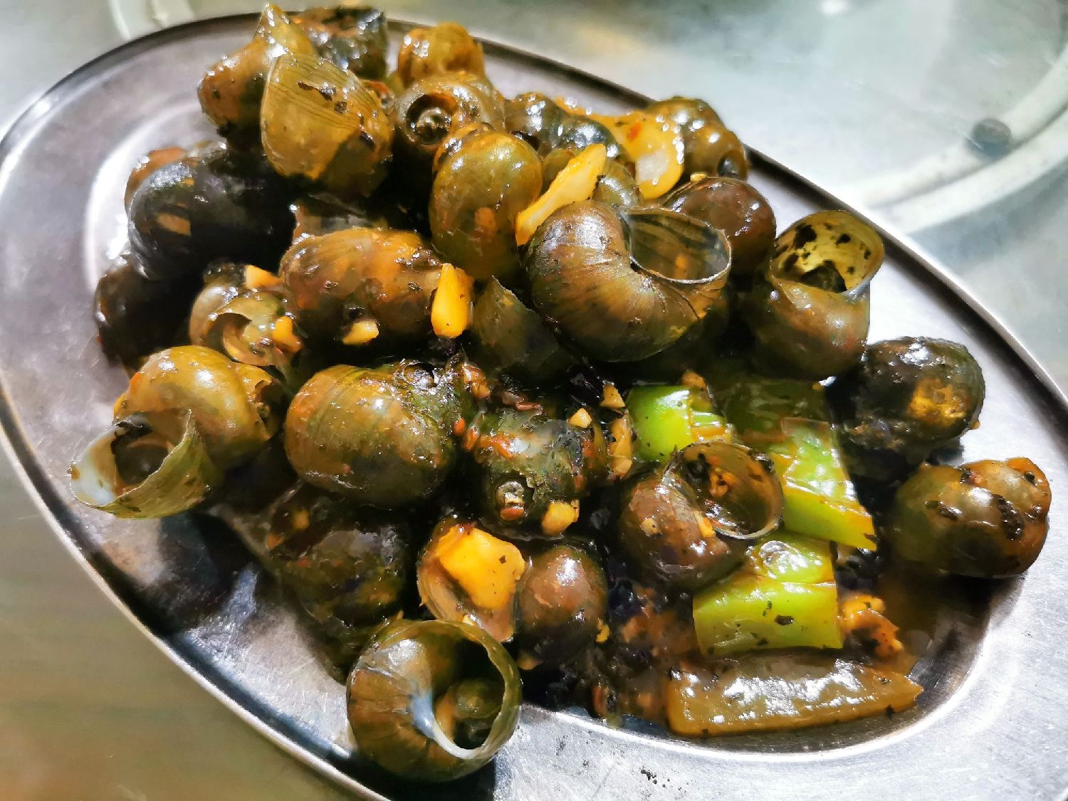 “这种塘螺在本地叫石螺,广西煮螺蛳粉多数用它,个头比田螺小,一般生长在村前鱼塘里,喜欢吸附在水中的石头、砖头、水泥板等物料上,外壳多数呈墨绿色或棕褐色。塘螺中外壳呈黑褐色、凸扭纹的叫鸡屎螺,也可食用,若不喜欢可挑拣出来。”台山四九镇四九墟一档主介绍说,石螺肉比田螺肉吃起来更爽口,选个头略大的容易敲尾,每公斤卖14元。