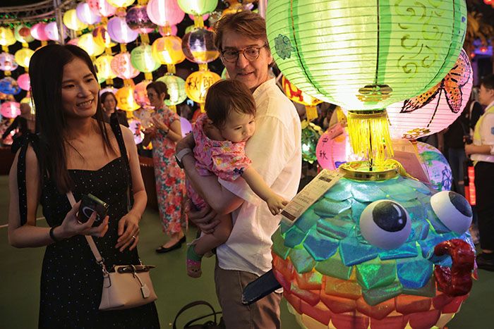 有内地旅客表示,早前就知道香港会在中秋节假期组织彩灯会活动,特意和家人过来排队与中秋彩灯合影。