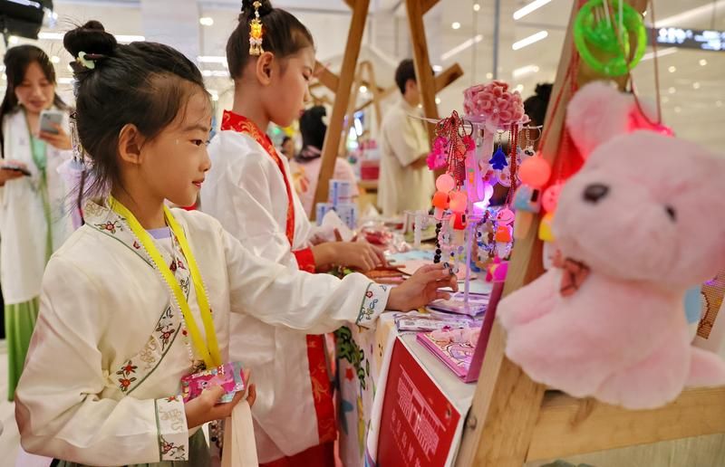 9月16日,位于河北省秦皇岛市的秦皇岛博物馆,小朋友体验非遗市集。(新华社)