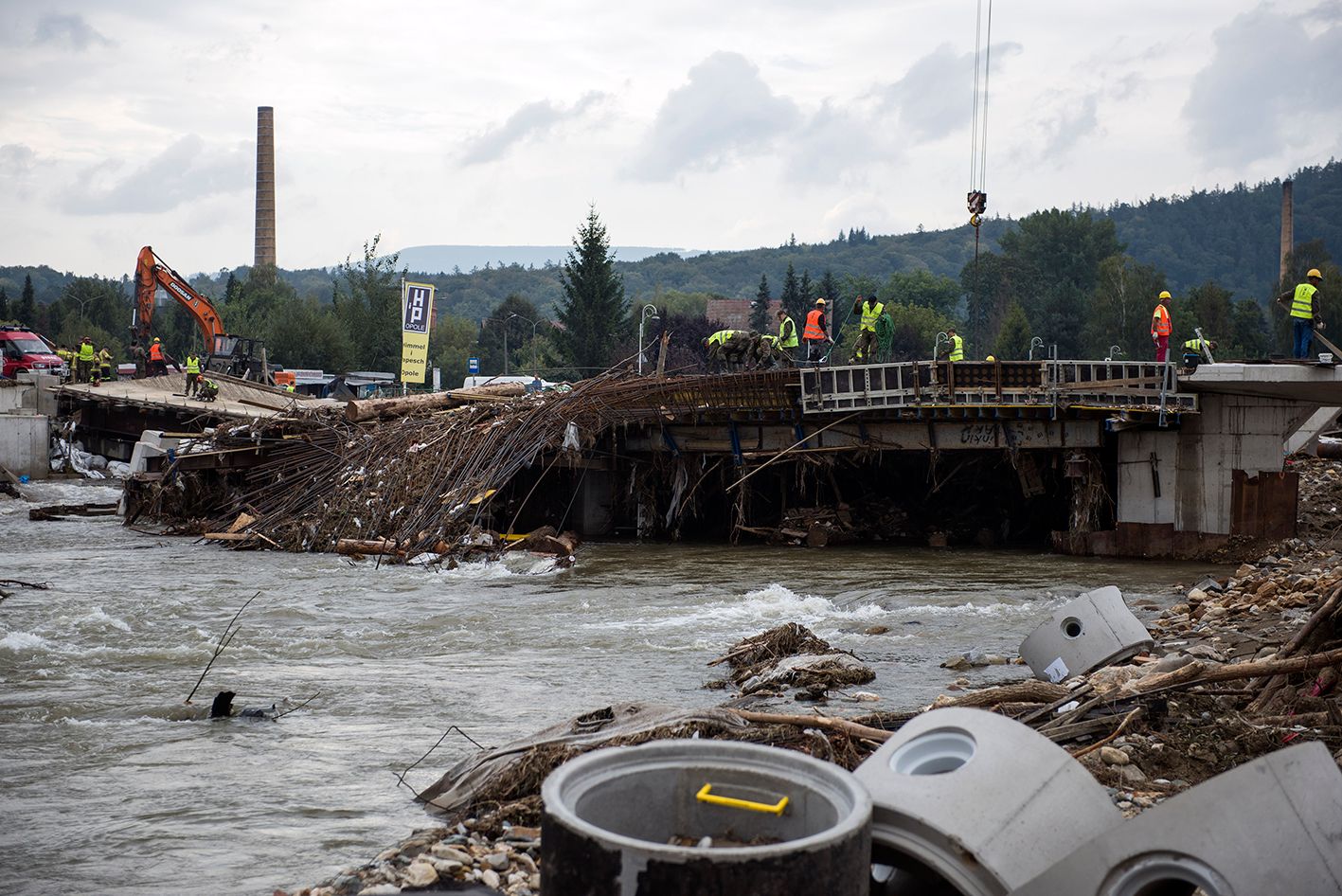 当地时间2024年9月19日,波兰,洪水过后一座被毁的桥梁。在波兰西南部,席卷中欧的暴雨和旋风导致了严重的洪水。像奥德拉河、尼萨河等经历了水位的急剧上升,造成了多次洪水和防洪堤防的破坏。(CFP)