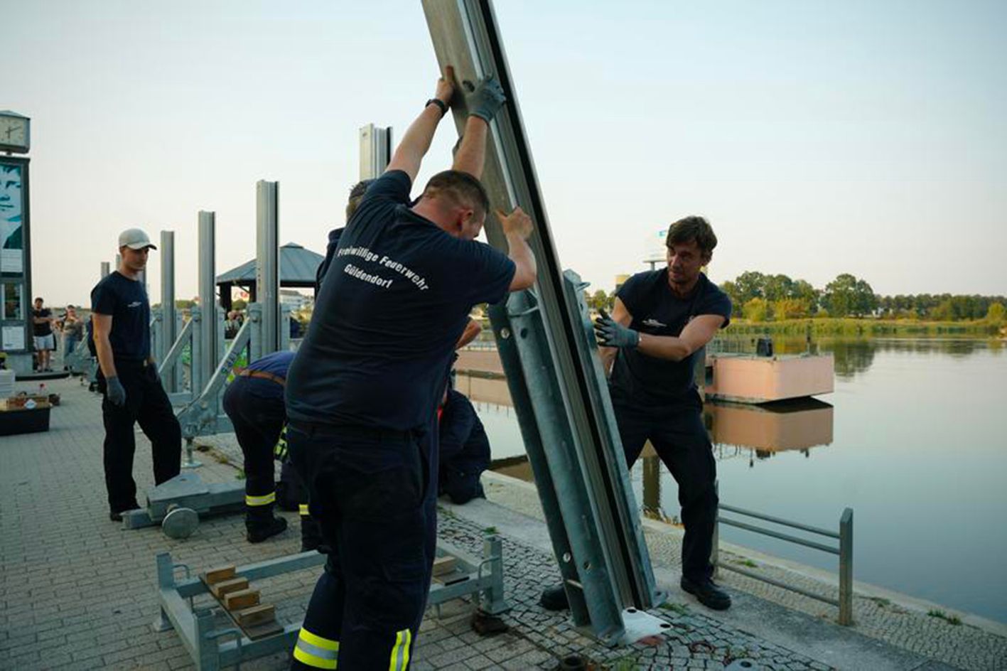 9月17日,消防员在德国奥得河畔法兰克福筑起防洪墙。德国部分地区近日出现持续暴雨、降雪和狂风等极端天气,巴伐利亚州、萨克森州和勃兰登堡州等地受影响严重。据德国时代在线网站报道,德国东部城市河流水位正迅速上升。(新华社)