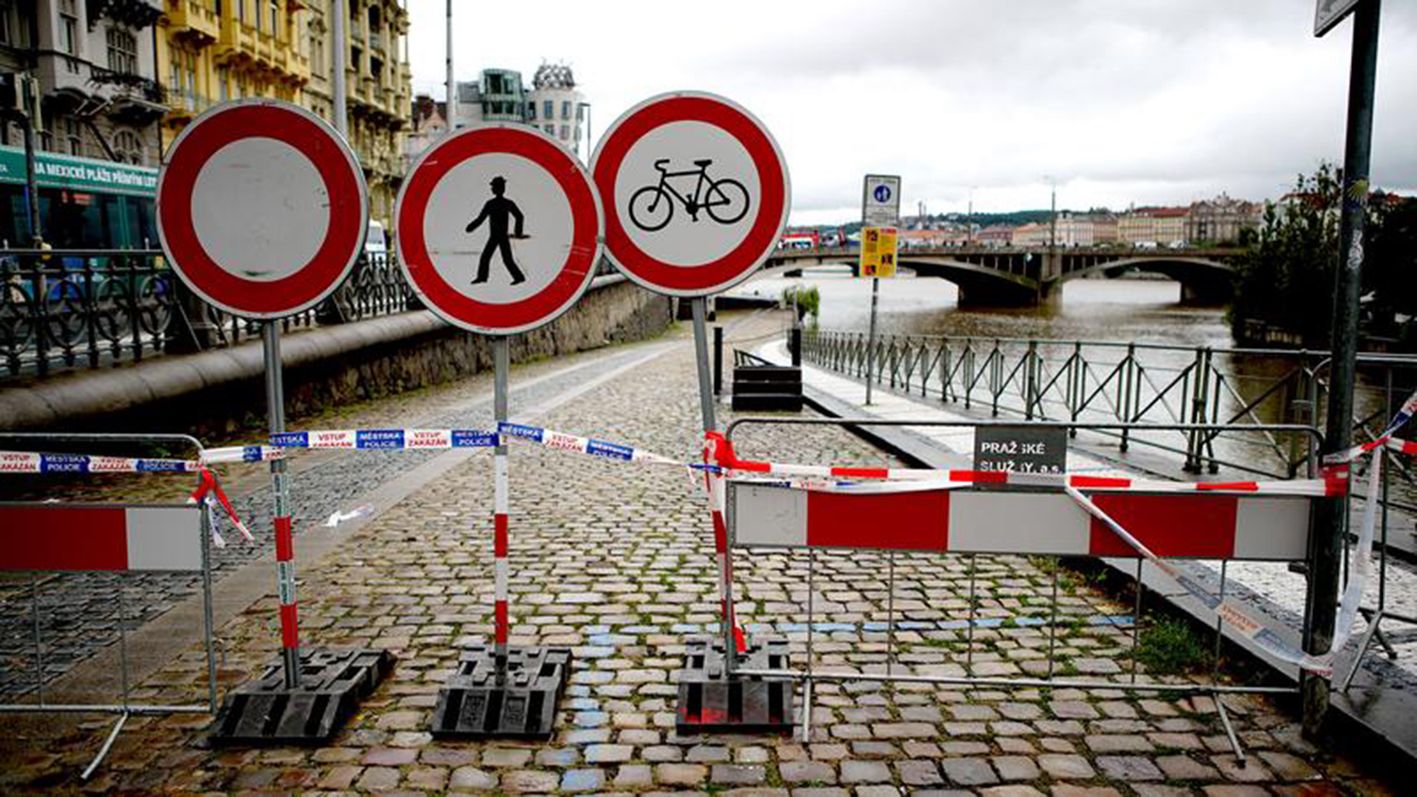 9月16日,在捷克首都布拉格的伏尔塔瓦河畔,由于河水上涨,通往河堤的道路被封闭。捷克近期受强降雨侵袭,部分地区发生洪灾。据捷通社报道,受洪灾影响,超过1.2万名捷克居民被迫疏散。(新华社)