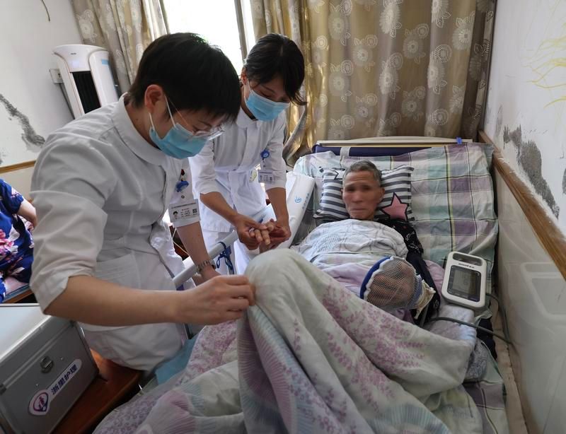 9月5日,浙江东浦街道社区卫生服务中心的医护人员上门为“家庭病床”患者进行巡诊、护理等健康服务。(图/新华社)