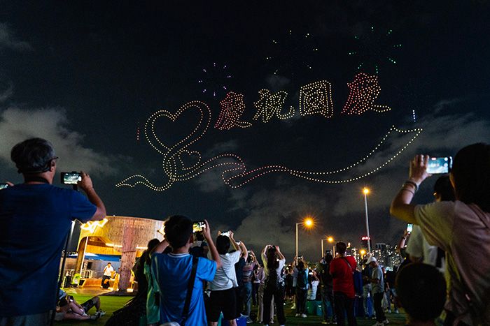 图为国庆75周年主题元素的无人机表演。(图/中新社)
