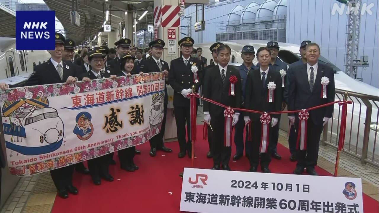 日本东海道新干线开业60周年,举行始发列车出发的纪念仪式