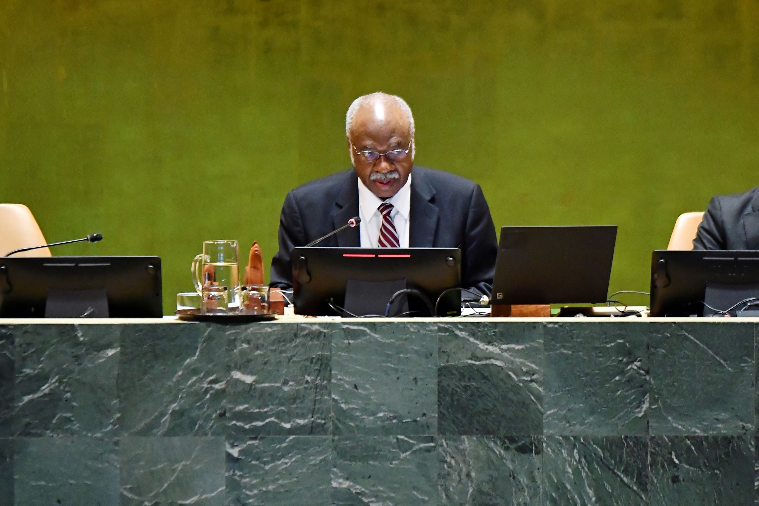 图为第79届联大主席菲勒蒙·扬当天发表联合国大会一般性辩论闭幕讲话。(图/新华社)