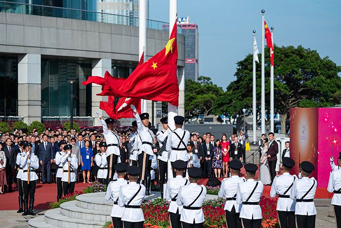 10月1日,庆祝中华人民共和国成立75周年升旗仪式在香港特别行政区金紫荆广场举行。(图/中新社)