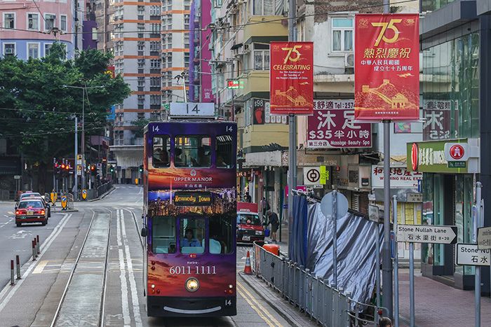 10月1日,香港喜庆祥和的节日氛围浓厚,“中国红”布满大街小巷,各项丰富多彩的庆祝活动也随之展开,共同庆祝新中国的75岁生日。