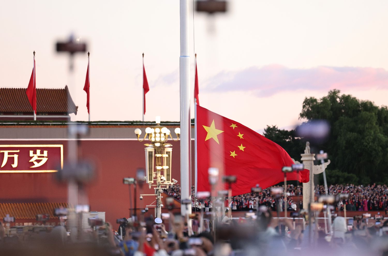 北京时间10月1日早晨6时许,迎着清晨第一缕阳光,北京天安门广场举行新中国成立75周年国庆节升旗仪式。