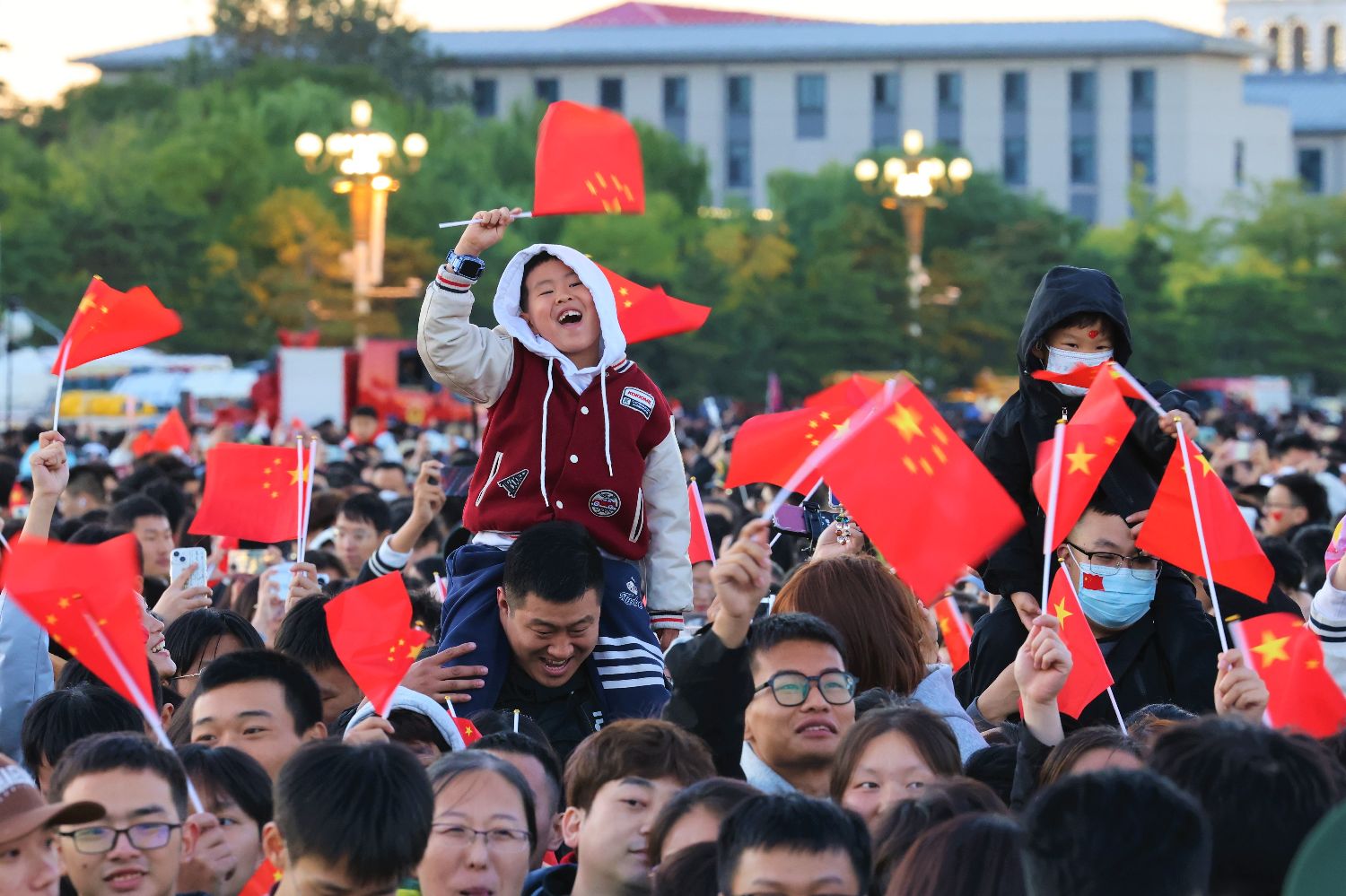 国庆佳节,中国各地活动精彩纷呈,共庆新中国75周年华诞。图为10月1日,隆重的升国旗仪式在北京天安门广场举行,现场人潮涌动。(中新社)