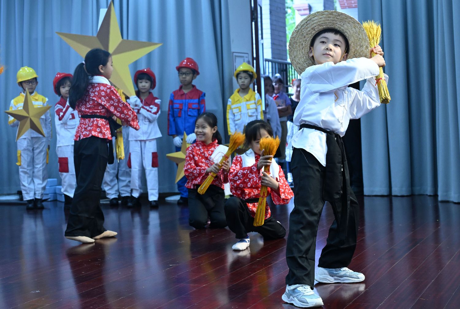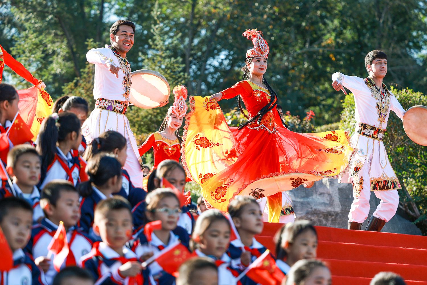 图为9月30日,北京市西城区京华实验学校学生在庆祝中华人民共和国成立75周年暨“我爱我的美丽祖国”主题教育活动上表演节目。(新华社)