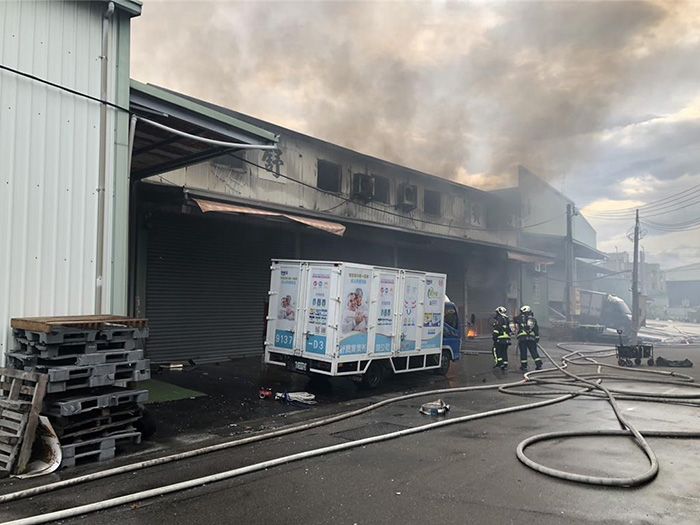 台中市西屯区一处家具工厂2日清晨5时发生火灾,造成3人死亡、1人受伤。 (图/台中市消防局提供)