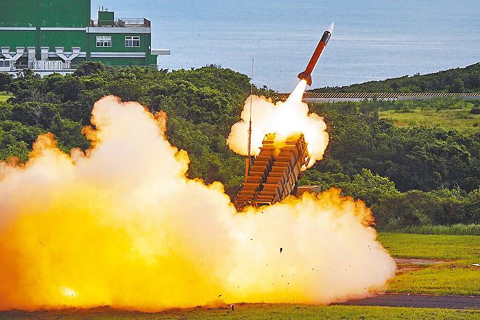 美国雷神公司研发的“爱国者”系统主要用于拦截来袭战机、巡弋导弹及战术导弹。图为“爱国者”PAC-2发射情形。(图/台北中时新闻网资料图)