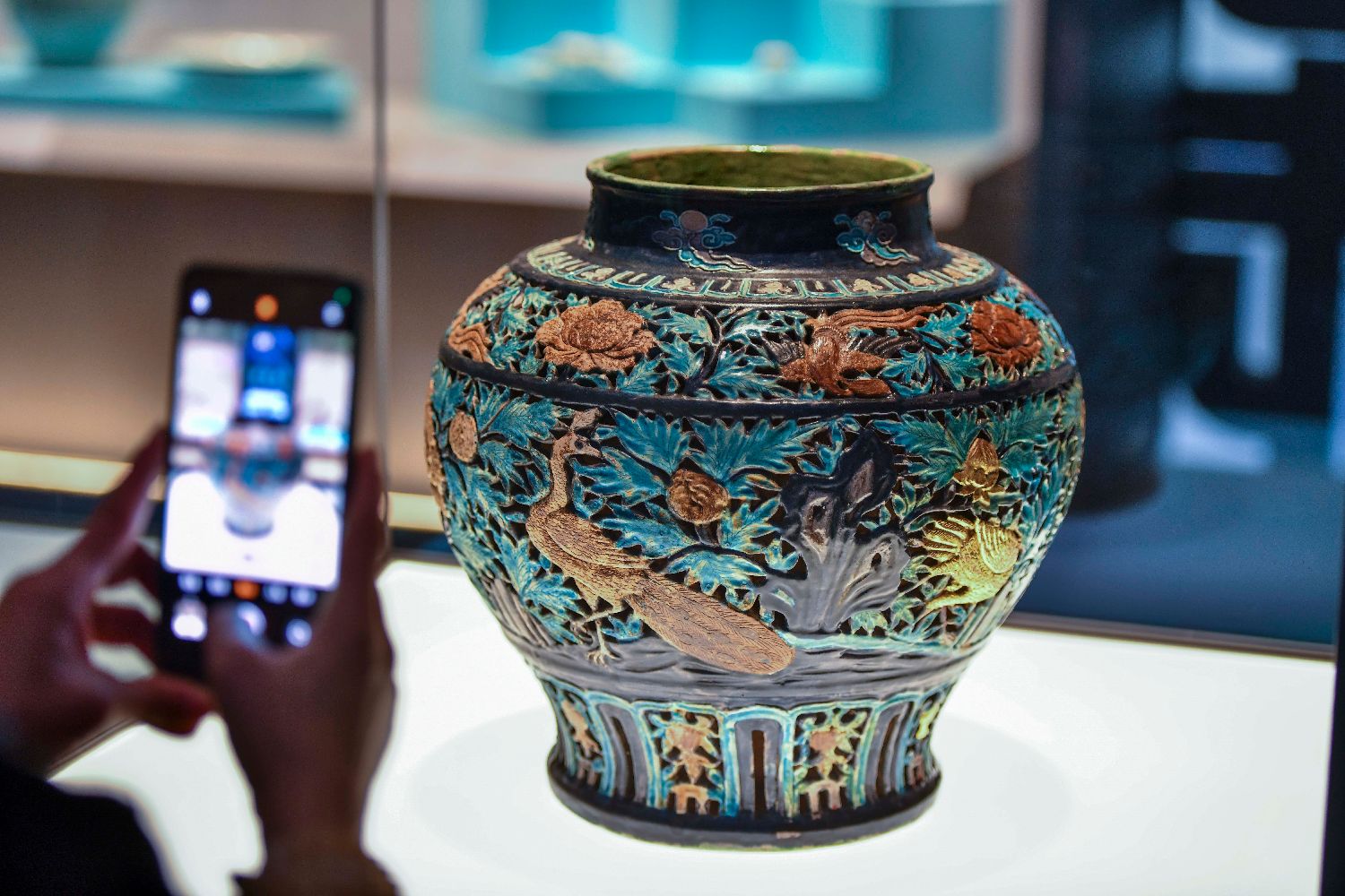 “‘珐华贴金镂空孔雀牡丹纹大罐’独此一件,体形硕大、装饰精美且工艺独特,尤其是其镂空和贴金工艺令人惊叹,为中国国内首次发现。”辛礼学说。