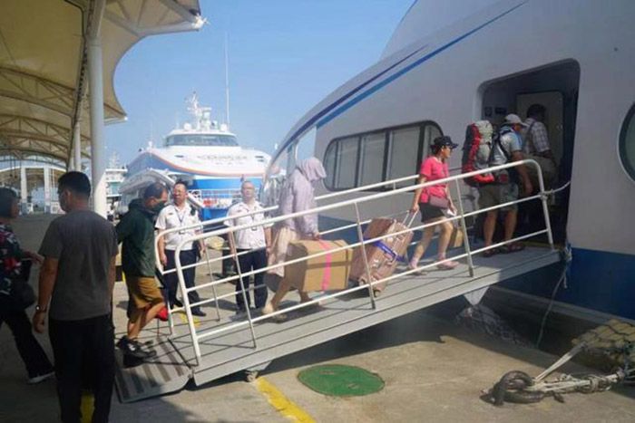 “十一”假期,福州马尾琅岐客运码头人来人往,图为旅客们排队登船。(图/厦门海事局)