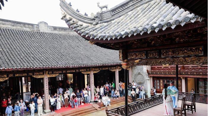 经过精心修缮,历史悠久的秦氏支祠焕发出新的生机,其百年老戏台在节假日里再度焕发光彩,成为经典曲目演绎的舞台。在这个充满文化底蕴的空间里,一出出传统戏曲轮番上演,为观众带来了一场场视听盛宴。