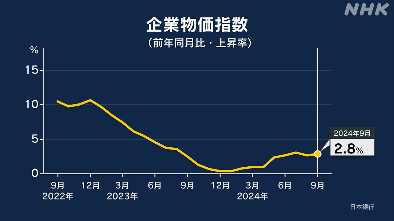 9月日本企业物价指数比去年同期上涨了2.8%,涨幅较上月有所扩大