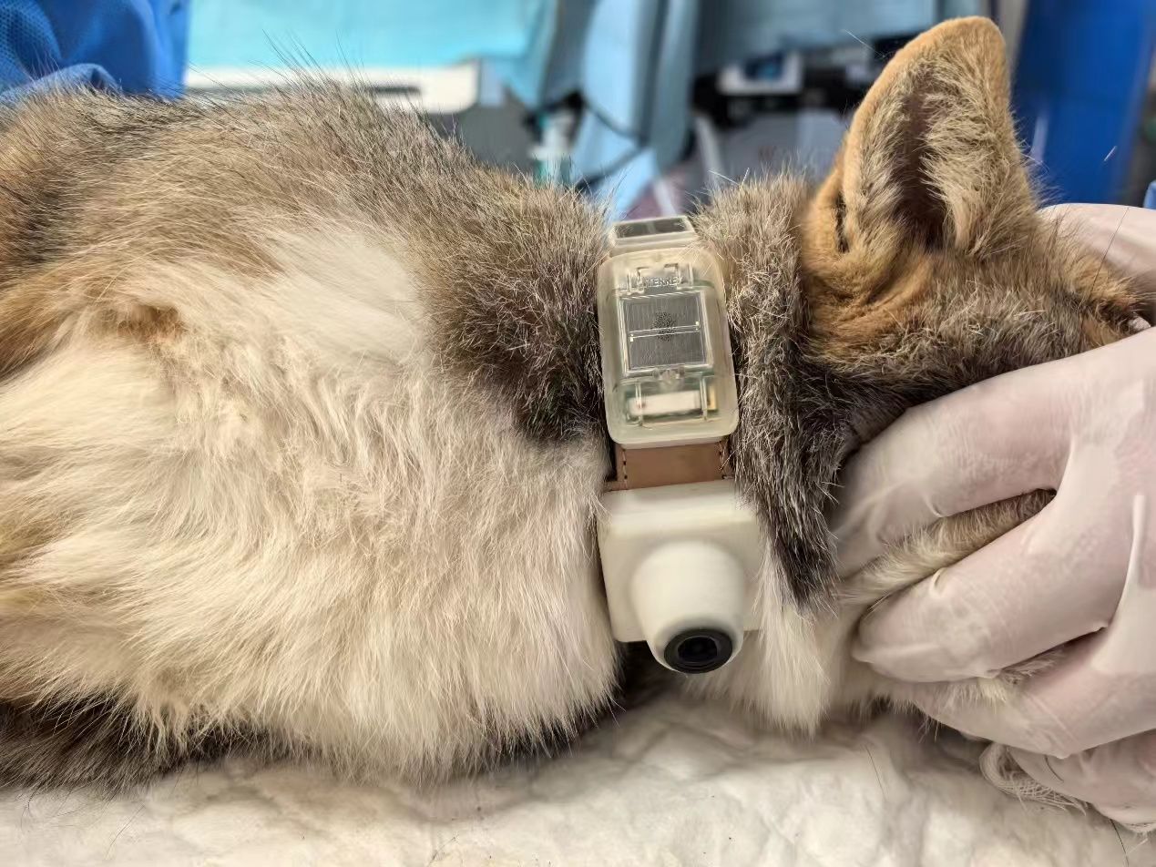 9月26日,科研工作人员正在为“狐三条”佩戴卫星定位项圈。(图/西宁植物园野生动物救护繁育中心供图 中新社发)
