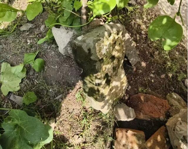 程春阳在菜地边发现的合肥古城墙砖。(图/合肥大皖新闻)