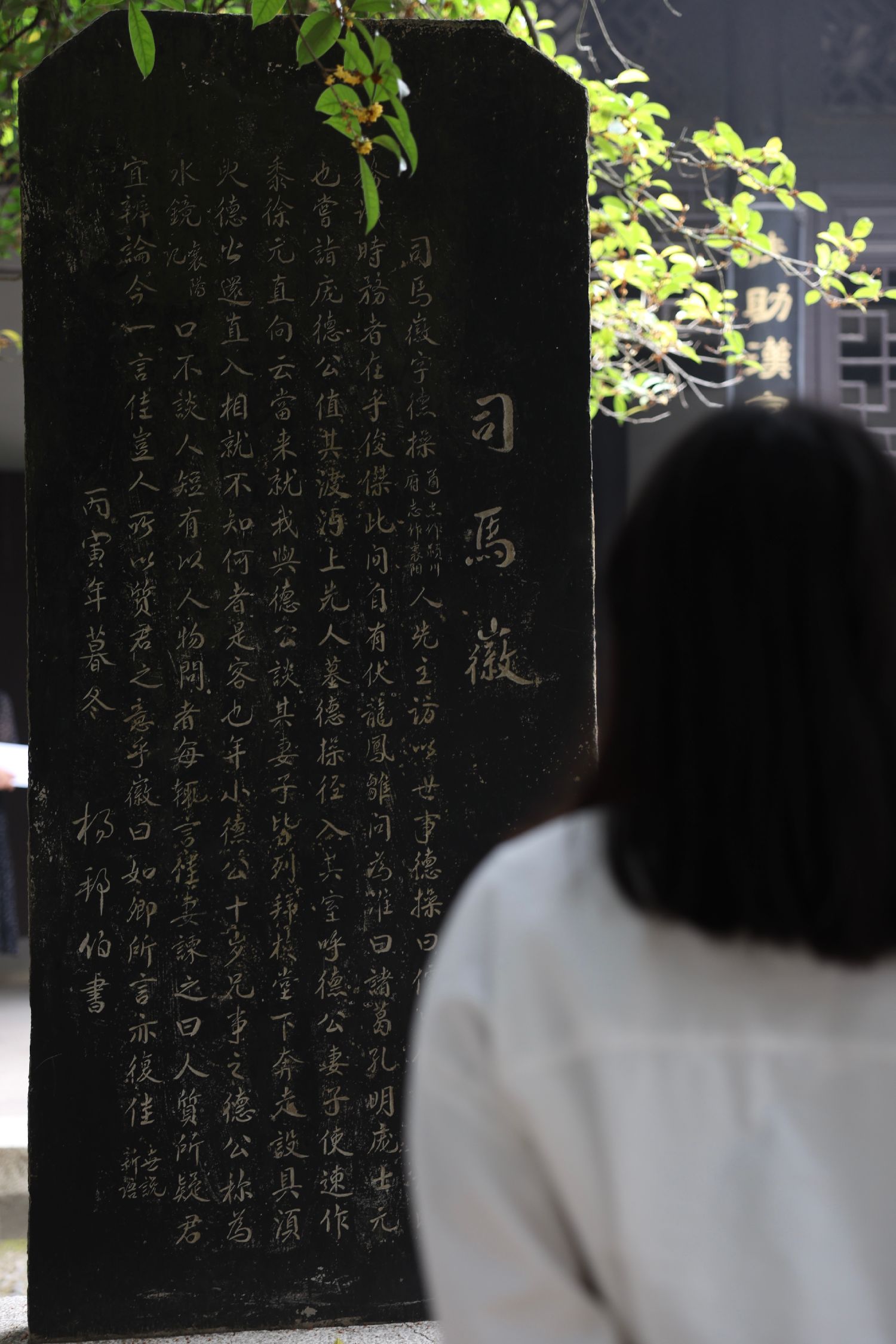 图为游客阅读司马徽故事石碑。(佳子 摄)