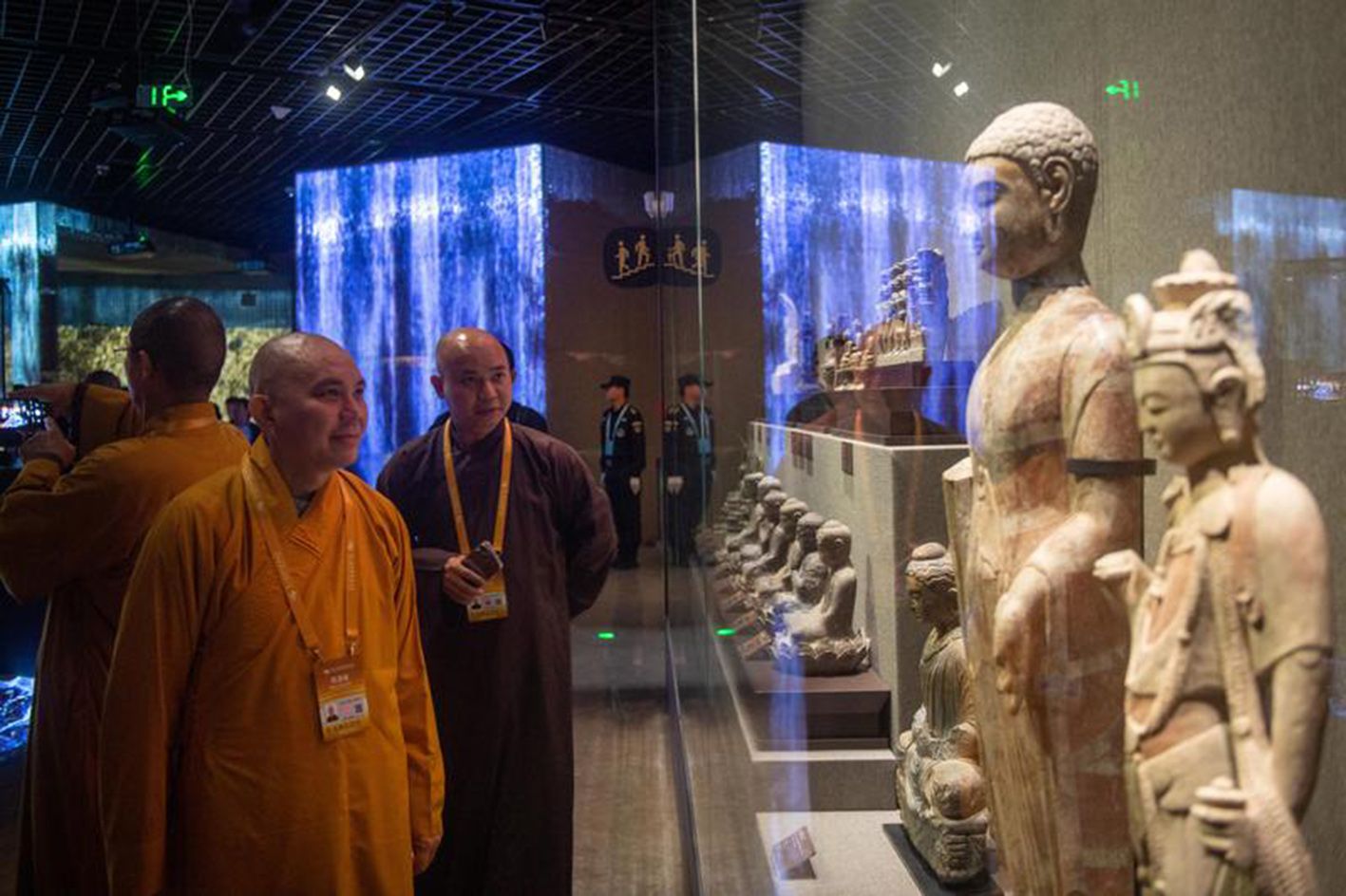 10月15日,观众观看第六届世界佛教论坛文化展陈。(新华社)