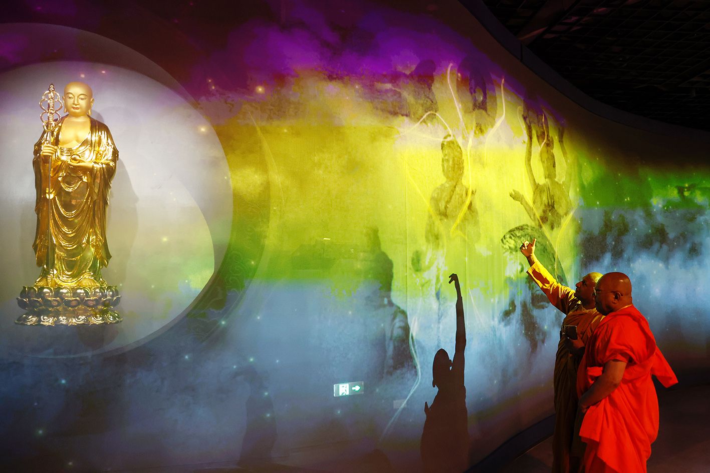 10月15日上午,第六届世界佛教论坛文化展陈揭幕仪式在宁波奉化弥勒博物馆举行。此次展陈总面积约2.3万平方米,“同愿同行——中国佛教传承发展主题创作展”“和合共生——世界佛教文化艺术展”“翰墨佛缘——‘中国历代绘画大系’佛教艺术珍品展”三大主题展规模大、原创丰富、数字化程度高。(浙江在线)