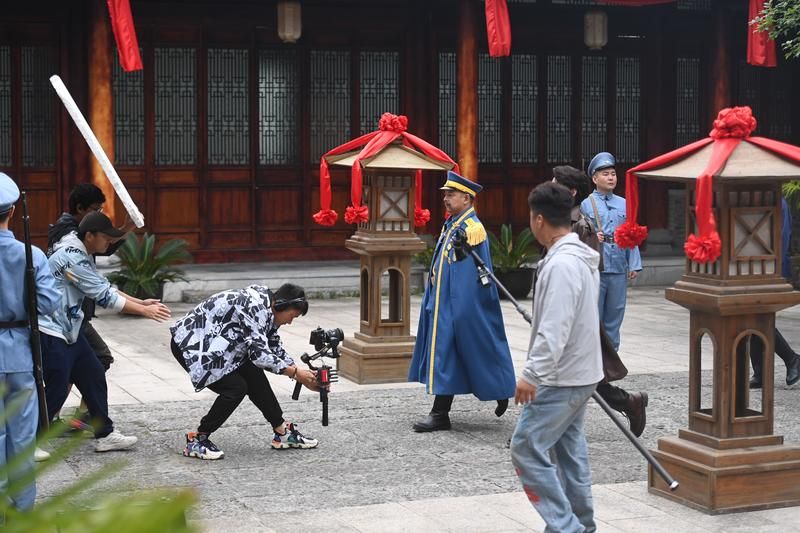 4月27日,一剧组在湖州影视城拍摄。(图/新华社)