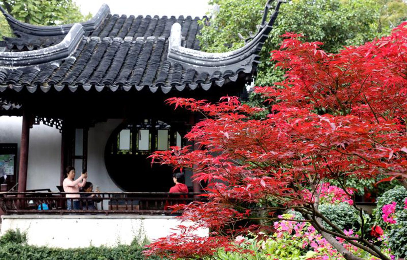 10月20日,游客在江苏苏州留园赏景游玩。(新华社)