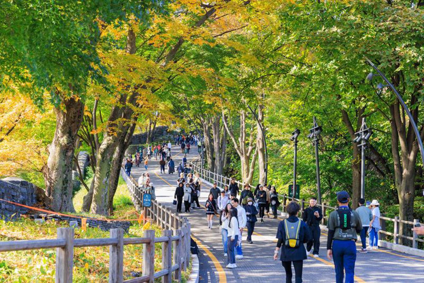 10月20日,人们在韩国首尔南山公园赏秋景。近日,首尔入秋,在位于首尔的南山公园内,游客纷至沓来,享受登高与赏秋的乐趣。(新华社)