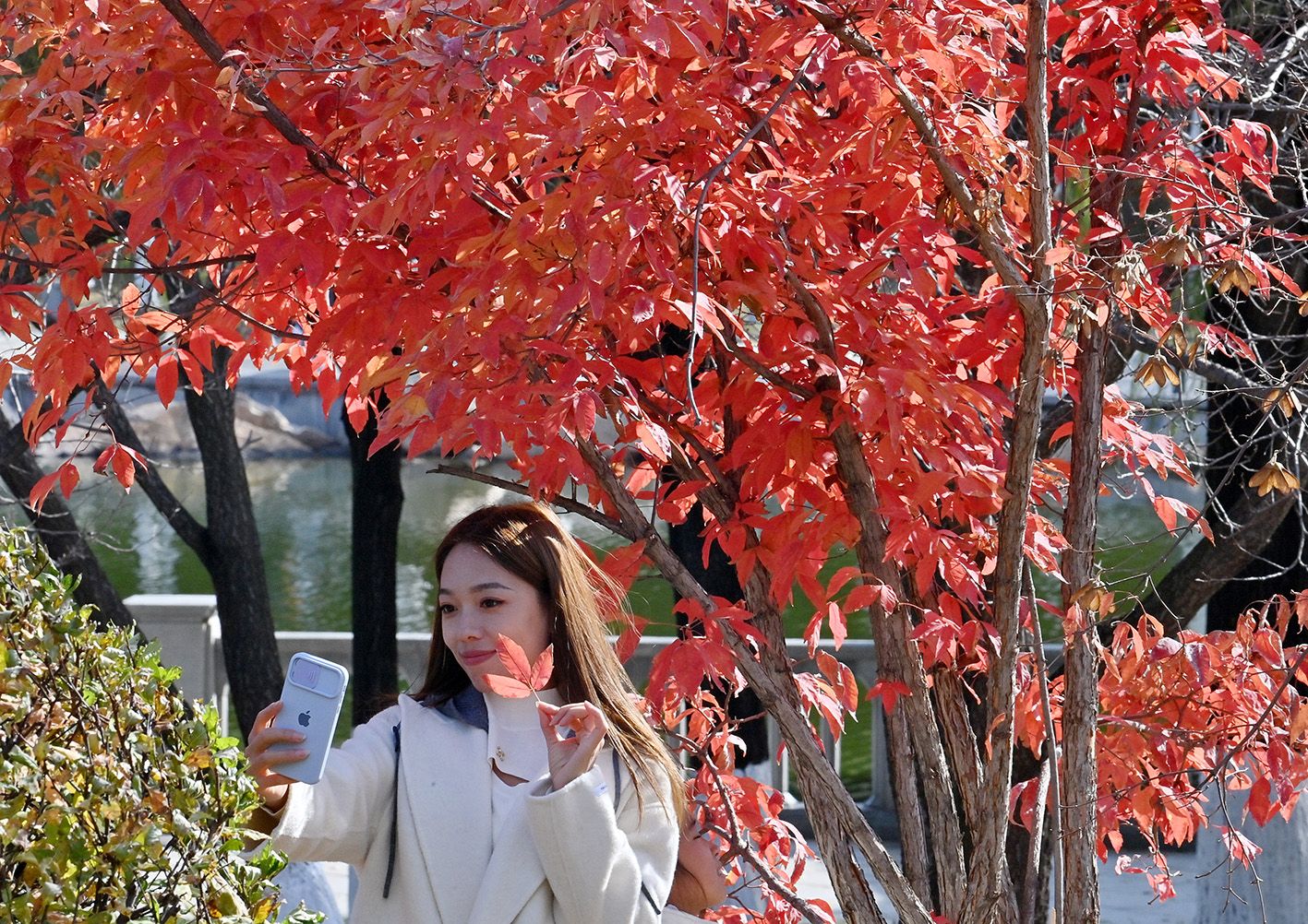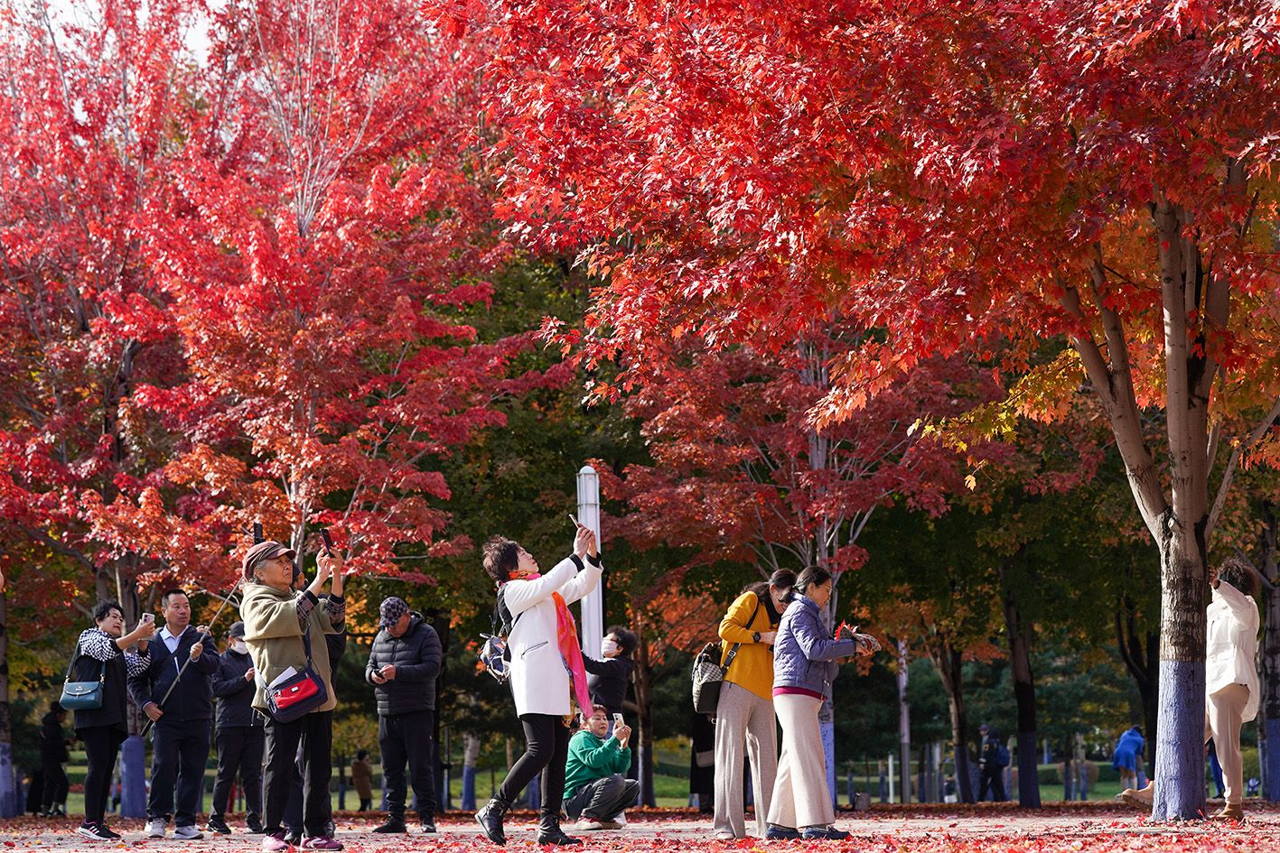 10月20日,吉林长春,市民外出赏秋景。秋色渐浓,长春各处秋景怡人,吸引大量市民利用周末时间踏叶赏秋,享受秋日美好时光。(中新社)