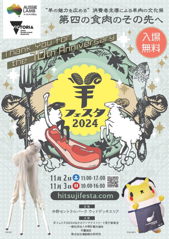 “羊肉节2024in Nakano Antenna Street”将于11月2日至3日在中野中央公园和其附近的中野四季之森公园举办。主办方是羊啮协会。