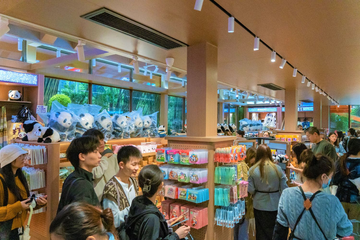 图为10月20日,重庆动物园虫动市集,熊猫主题文创产品深受广大游客喜爱,销售持续火爆。(CFP)