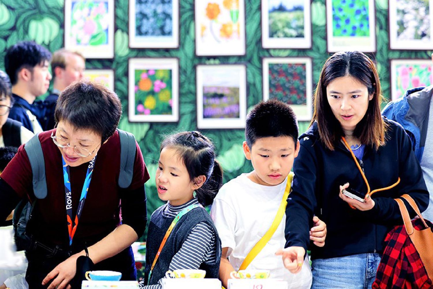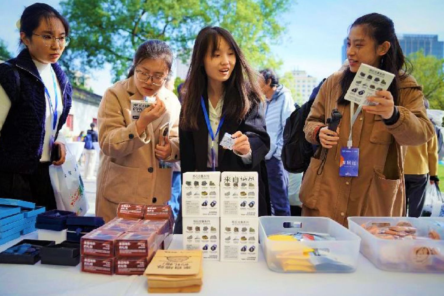 图为10月22日,北京,聚星杯成果展和现场文创市集上,来宾们参观创意满满的天文文创产品。(北京《新京报》)