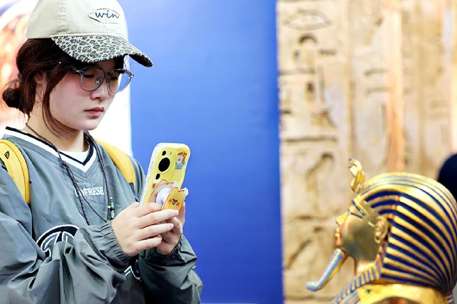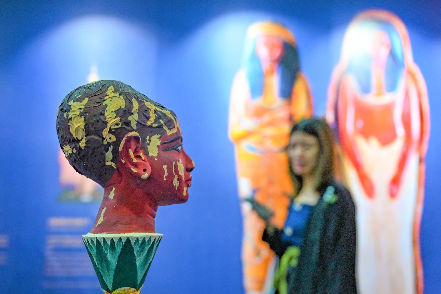 图为10月19日,第十八届杭州文化创意产业博览会,埃及文化主题展区吸引参观者。(中新社)