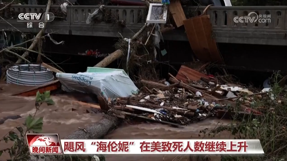 北卡罗来纳州官员报告称,飓风“海伦妮”已造成该州96人死亡。(图/中国央视新闻视频截图)