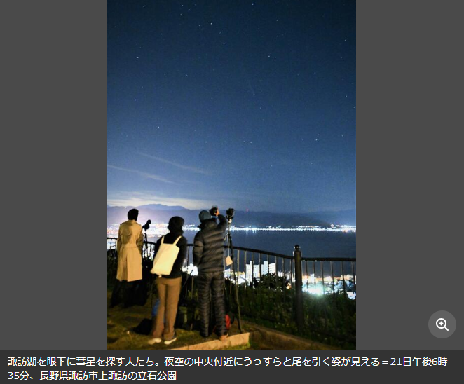 综合《信浓每日新闻》、HUFFPOST网站、nlab网站报道,众多天文爱好者近日纷纷前往位于长野县诹访市上诹访立石公园,只为观测紫金山-阿特拉斯彗星。
