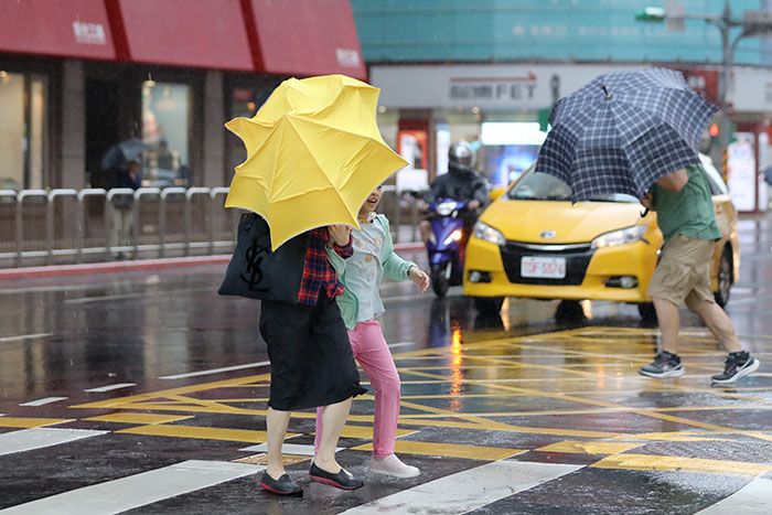 当地时间10月30日晚至11月1日清晨,“康妮”带来的狂风暴雨对台湾影响最剧烈。图为10月30日台北街头的行人。 (图/中新社)